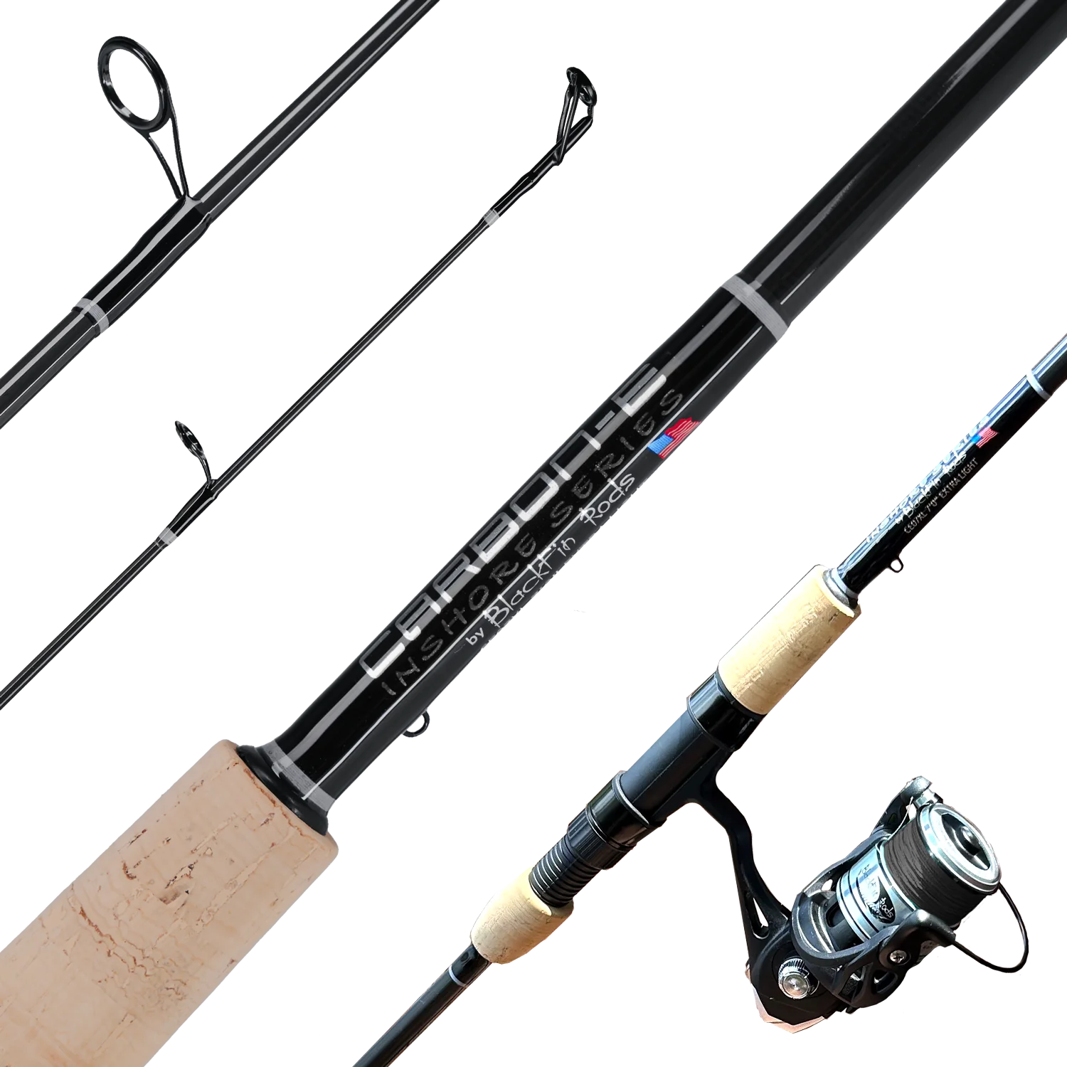 The Blackfin Carbon Elite series represents cutting-edge design, crafted from lightweight carbon composite for exceptional tip sensitivity and top-tier performance. Equipped with premium Seaguide components, these rods are available with both full cork and split grip options to ensure balance and comfort during long fishing sessions. Perfectly suited for inshore, nearshore, and freshwater fishing, the Carbon Elite delivers reliability and precision for anglers of all levels.